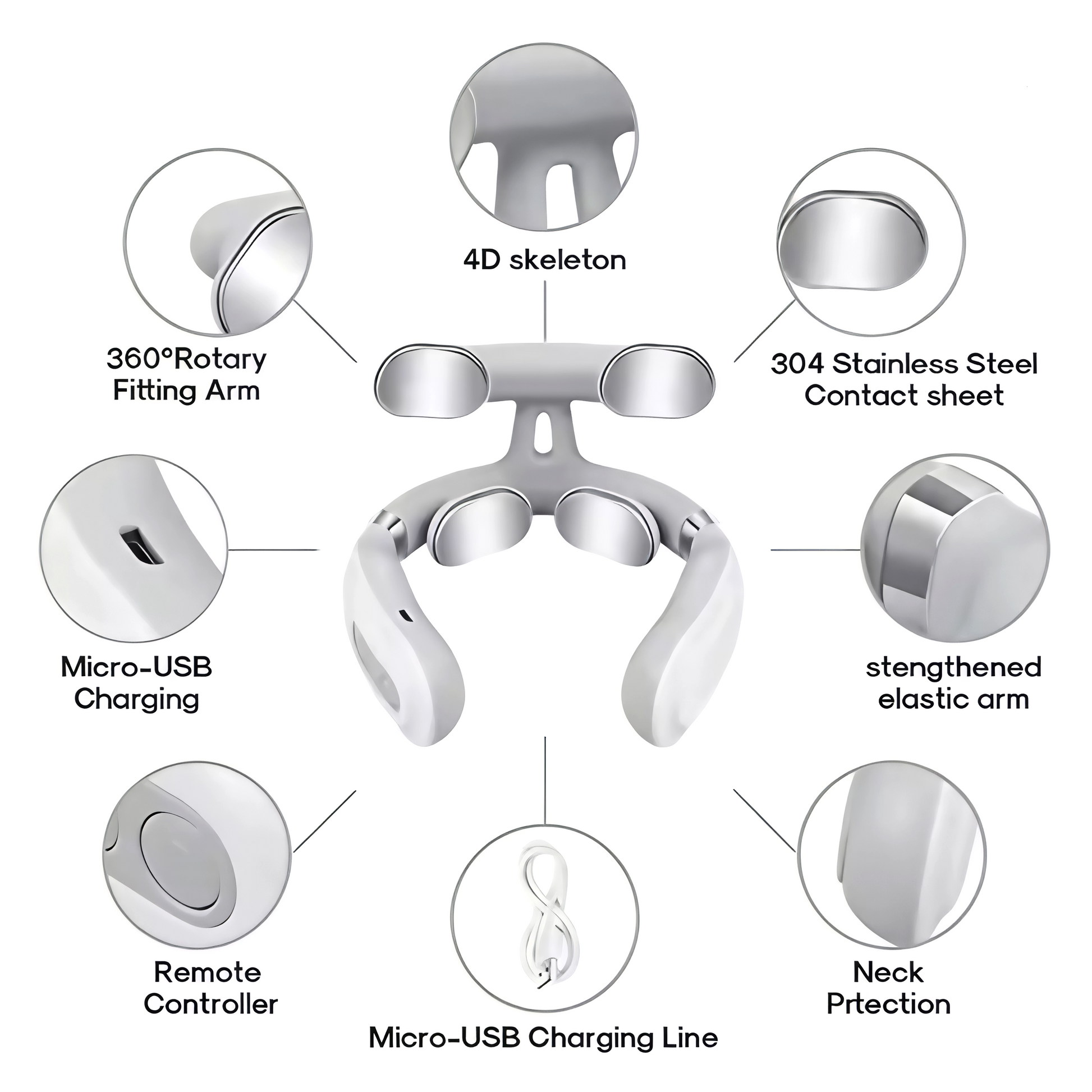 4-Head Design for Maximum Coverage: The innovative U-shaped 4-head design ensures broad and even contact across the neck muscles for a more effective massage experience.